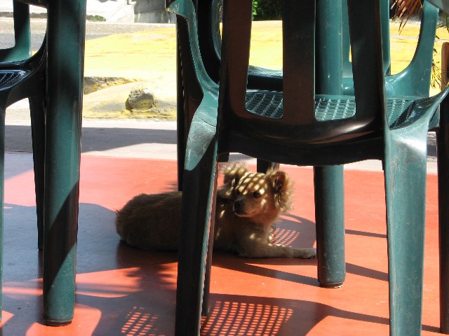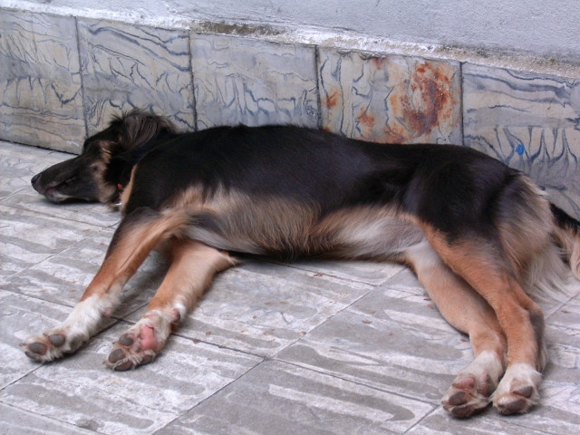 途中で見かけた犬。最も暑い地点ですが、やはりここにいるので慣れているようです。