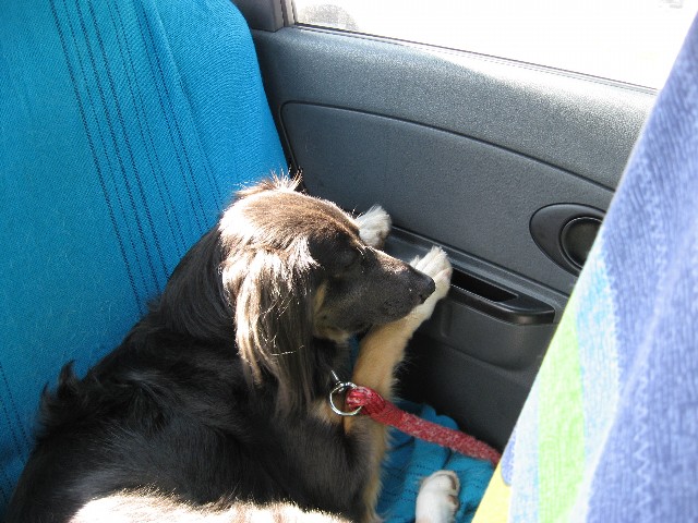 行きは立ったり座ったりしてよく外を見ていたハナですが、帰りはさすがに疲れたのかけっこう寝ていました。