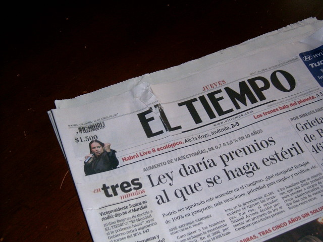 ボゴタには新聞や郵便受けがない家が多く、うちもそうなのですが、その場合は新聞はドアの下の隙間から入れられます。