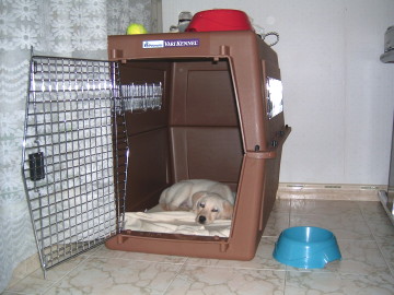 その後、一時的に面倒を見ていた野良犬の寝場所に使ったりしていたのですが、訓練グループで、バリケンの修理を頼むので希望するなら一緒に頼まないかと言われました(詳しく知らないんですが、たぶんジャックが使っていたバリケンを修理したのではないかと。横に付いている窓の格子に他の犬のリードとか結んでいたせいでがたがたになったのだと思います。そんな使い方しちゃダメだって)。