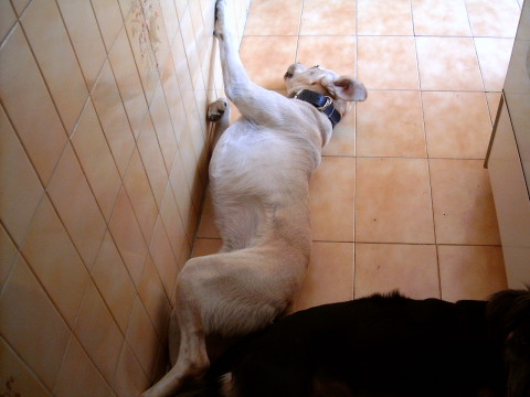 たいてい、散歩から帰ってきたときとか、私が帰ってきたときとかはうれしがって飛びついてくるんですが、なんか避けています。逃げちゃったから私が怒っているということはわかっているんです。